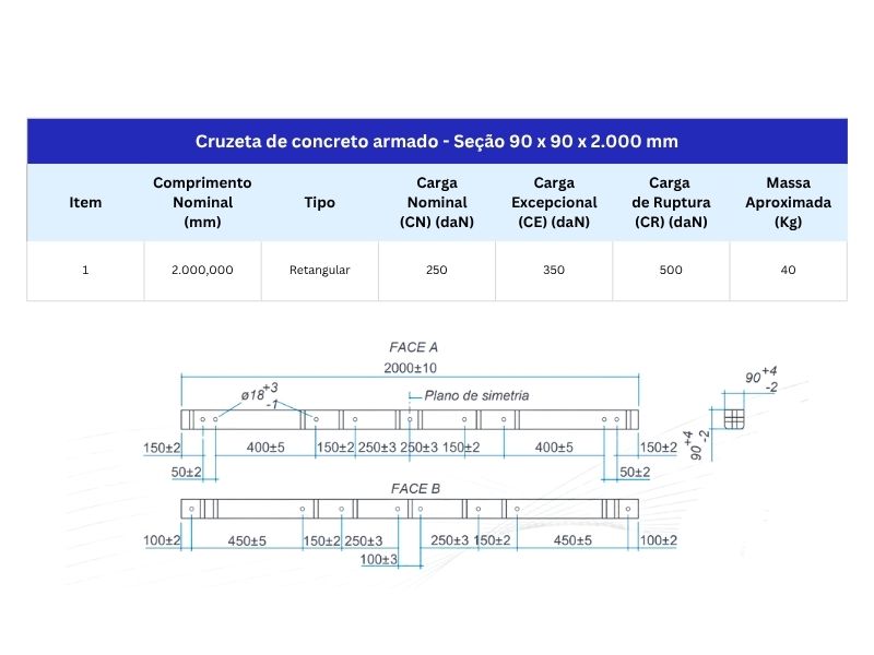 Cruzeta de concreto armado – Seção 90 x 90 x 2.000 mm